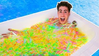 HOLAAA! SIGUEN LOS VIDEOS DE BAÑERA! xd en este video intenté estar 24 HORAS en una bañera llena de LUCES NEON! (las pulseras de luz, o palitos de luz xd) y esto fue lo que paso! 24 horas en el baño en una bañera de luces ahhhh